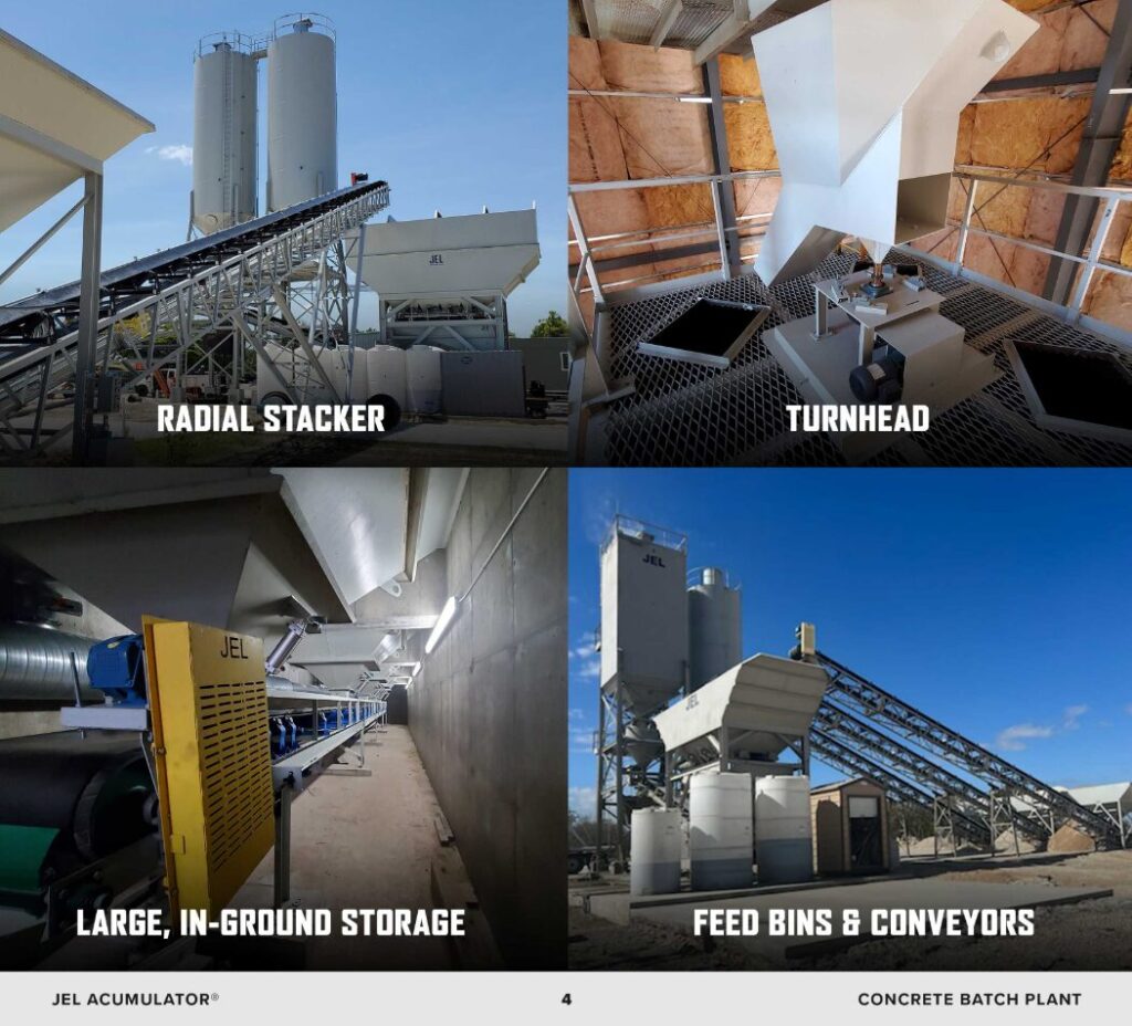 JEL conveyors are robust, custom-built conveyors used primarily in concrete batch plants for moving and transferring raw materials such as sand, gravel, and cement between storage bins, mixers, and other processing units.